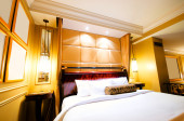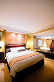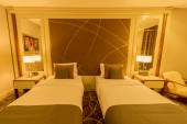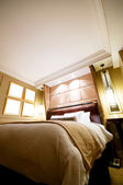 Podwójne łóżko w nowoczesnym pokoju wewnętrznym