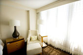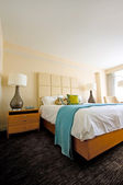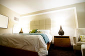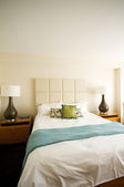 Podwójne łóżko w nowoczesnym pokoju wewnętrznym