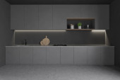 Zdjęcie "Close up widok na jasne przytulne wnętrze pokoju kuchnia z szarą szafą, piekarnik, kuchenka elektryczna, oliwa z oliwek, zlewozmywak. Nowoczesny skandynawski minimalistyczny design. 3d renderowanie" może być wykorzystywane do celów osobistych i komercyjnych zgodnie z warunkami zakupionej licencji Royalty-free. Obraz jest dostępny do pobrania w jakości wysokiej rozdzielczości do 5760x3840.