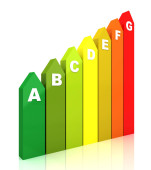 3D, koncepcja efektywności energetycznej, na białym tle