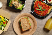 inne jedzenie niż dostawa. Jedzenie na wynos. żywność dla firmy w daniach jednorazowych. dostawa żywności z miejscem dla marki lub tekstu