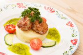 Zdjęcie "klopsiki z tłuczonymi ziemniakami" może być wykorzystywane do celów osobistych i komercyjnych zgodnie z warunkami zakupionej licencji Royalty-free. Obraz jest dostępny do pobrania w jakości wysokiej rozdzielczości do 5760x3840.