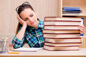 portret znudzony uczennica robi swoją pracę domową na biurko