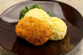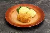 Chrupiący kotlet z kurczaka z mięsa mielonego z puree ziemniaczanym