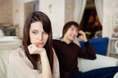 sprytne zazdrosny człowiek zaborczy szpiegostwo oglądania kobieta rozmowy przez