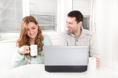 kobieta zakochana ciekawie słuchając jej człowiekowi mówić