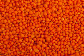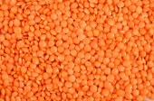 Zbliżenie nasion soczewicy czerwonej niegotowanych.