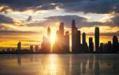 Dubai z złoty sylwetka centrum przeciwko laguny w Zjednoczone Emiraty Arabskie