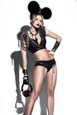 Kobieta ubrana jak mysz kreskówki mody z dużymi uszami. Fashion art photo