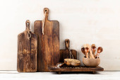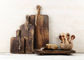 Pusta deska do cięcia Deska do cięcia na starym stole rustykalnym