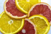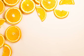 plasterki pomarańczowych owoców, widok z góry. Pomarańczowa tekstura tła.