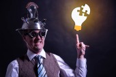 Zdjęcie "Old fashioned man holding lightbulb. Bright idea concept" może być wykorzystywane do celów osobistych i komercyjnych zgodnie z warunkami zakupionej licencji Royalty-free. Obraz jest dostępny do pobrania w jakości wysokiej rozdzielczości do 5760x3840.