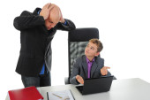 Zdjęcie "Sekretarz robi makijaż do szefa. na białym tle" może być wykorzystywane do celów osobistych i komercyjnych zgodnie z warunkami zakupionej licencji Royalty-free. Obraz jest dostępny do pobrania w jakości wysokiej rozdzielczości do 5760x3840.