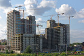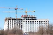 budowę domu. chłodne zimowe wieczory na Syberii. drzewa w śniegu.