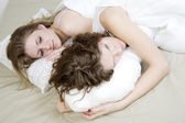 szczęśliwą rodzinę, leżąc w łóżku