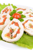 kurczaka pyszne roll na tabliczce na stół szczegół