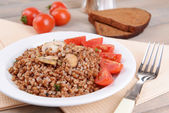 gotowanej kaszy gryczanej w misce na stół szczegół