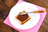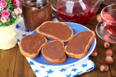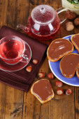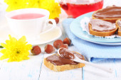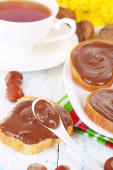 Chleb z orzechami laskowymi słodkiej czekolady rozłożone na stole