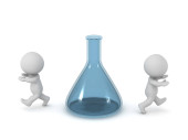 dwie lalki z odczynniki chemiczne. na białym tle nad białym