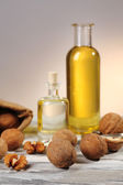 olej z orzecha włoskiego i orzechów, na białym tle