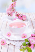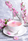 owoc piękny kwiat filiżankę herbaty na stół szczegół