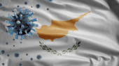 Cypryjska flaga powiewa na wietrze. Zbliżenie cypryjskiego sztandaru, miękki i gładki jedwab. Tkanina tkanina tekstury chorąży tło. Użyj go na dzień narodowy i krajowe okazje koncepcja.