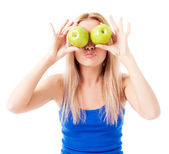 nastoletnia dziewczynka gospodarstwa kiwi w jej ręce i miny
