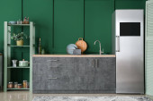 Zdjęcie "Stylowe wnętrze nowoczesnej kuchni" może być wykorzystywane do celów osobistych i komercyjnych zgodnie z warunkami zakupionej licencji Royalty-free. Obraz jest dostępny do pobrania w jakości wysokiej rozdzielczości do 5760x3840.