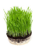 makro zbliżenie pszenicy trawy rosnące z korzeniami w ziemi brud i gleby