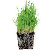 makro zbliżenie pszenicy trawy rosnące z korzeniami w ziemi brud i gleby