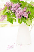 piękny liliowy kwiaty w wazonie, na drewnianym stole, na kolor tła