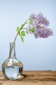 piękne kwiaty bzu w szklanym słoiku, na drewnianym stole kolor, na jasnym tle