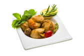Grill ziemniaczany serwowane krążki cebulowe i sałatka