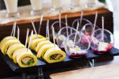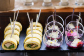 Zdjęcie "Usługi cateringowe. Przekąski dla gości na stole." może być wykorzystywane do celów osobistych i komercyjnych zgodnie z warunkami zakupionej licencji Royalty-free. Obraz jest dostępny do pobrania w jakości wysokiej rozdzielczości do 5760x3840.