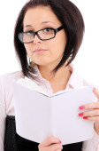 kobieta czytająca książkę. na białym tle nad białym