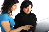 dwóch młodych interesu z laptopa na białym tle nad białym