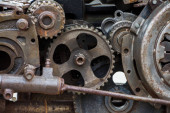 old motorcycle spring suspension, close-up, visible rust and erosion of metal