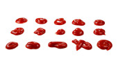 Czerwony sos rozpryski izolowane na białym tle. Ketchup.