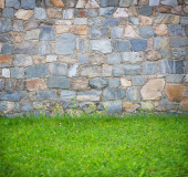 kamienne ściany murów zawierające świeża trawa zielony.