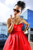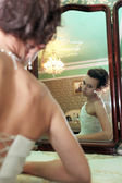 podziwia piękne panienki w lustrze swoje odbicie w sypialni