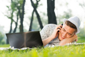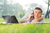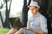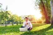 Zdjęcie "młody człowiek pracujący w parku z laptopem" może być wykorzystywane do celów osobistych i komercyjnych zgodnie z warunkami zakupionej licencji Royalty-free. Obraz jest dostępny do pobrania w jakości wysokiej rozdzielczości do 5760x3840.