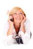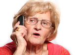 Portret pani dość starszy rozmawia przez telefon na białym tle