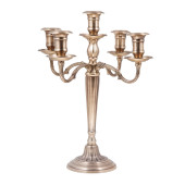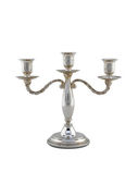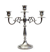 Zabytkowy zabytkowy srebrny świecznik na białym tle