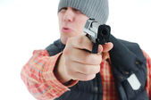 portret młodego modny afrykańskiego człowieka z pistoletu