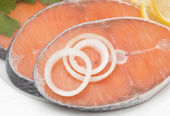 filet świeży surowe ryby czerwone nad białym