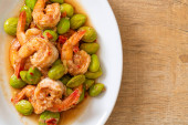 Słodkie krewetki jest tajskie danie, które gotuje się z sosem rybnym i cukrem - azjatycki styl żywności