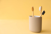 Uchwyt ze szczoteczkami do zębów na białym tle