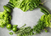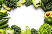 Ramka wykonana ze świeżych zielonych warzyw na białym tle