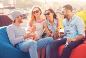Grupa przyjaciela śpiewać razem przy basenie