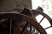 żelazne koło furgonetki stare i wywietrzone z bliska na tle ziemi